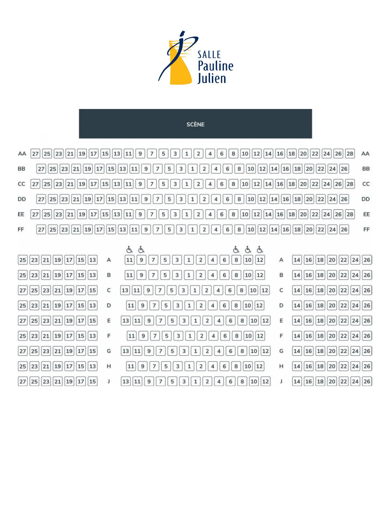 Si vous ne trouvez pas le plan de votre salle, veuillez consulter la billetterie directement.